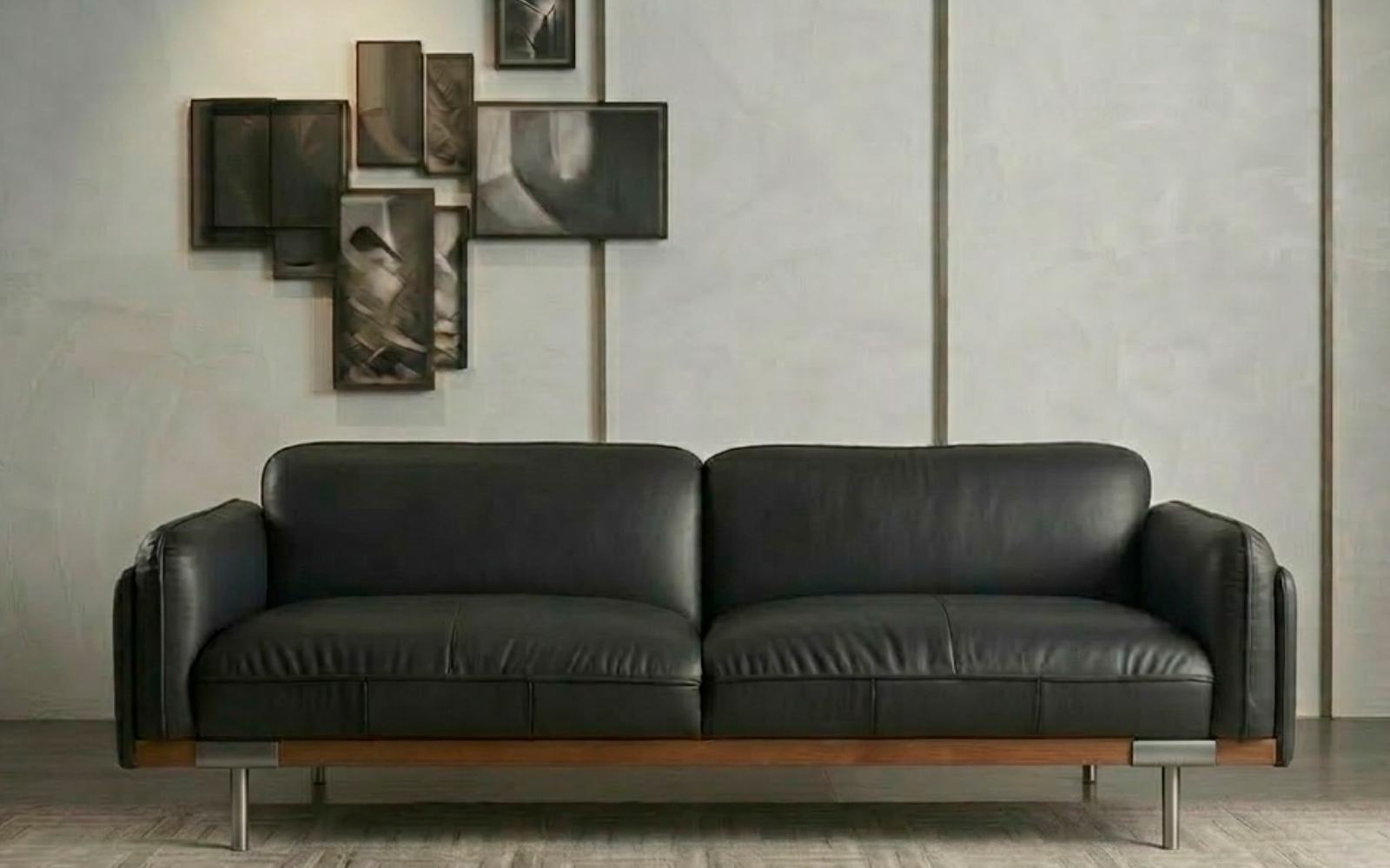 Sofá moderno importado, tapizado en cuero de primera calidad que resalta lujo, confort y durabilidad. Sus patas minimalistas y elegantes aportan un estilo sofisticado y contemporáneo, ideal para cualquier ambiente. Disponible para entrega inmediata.