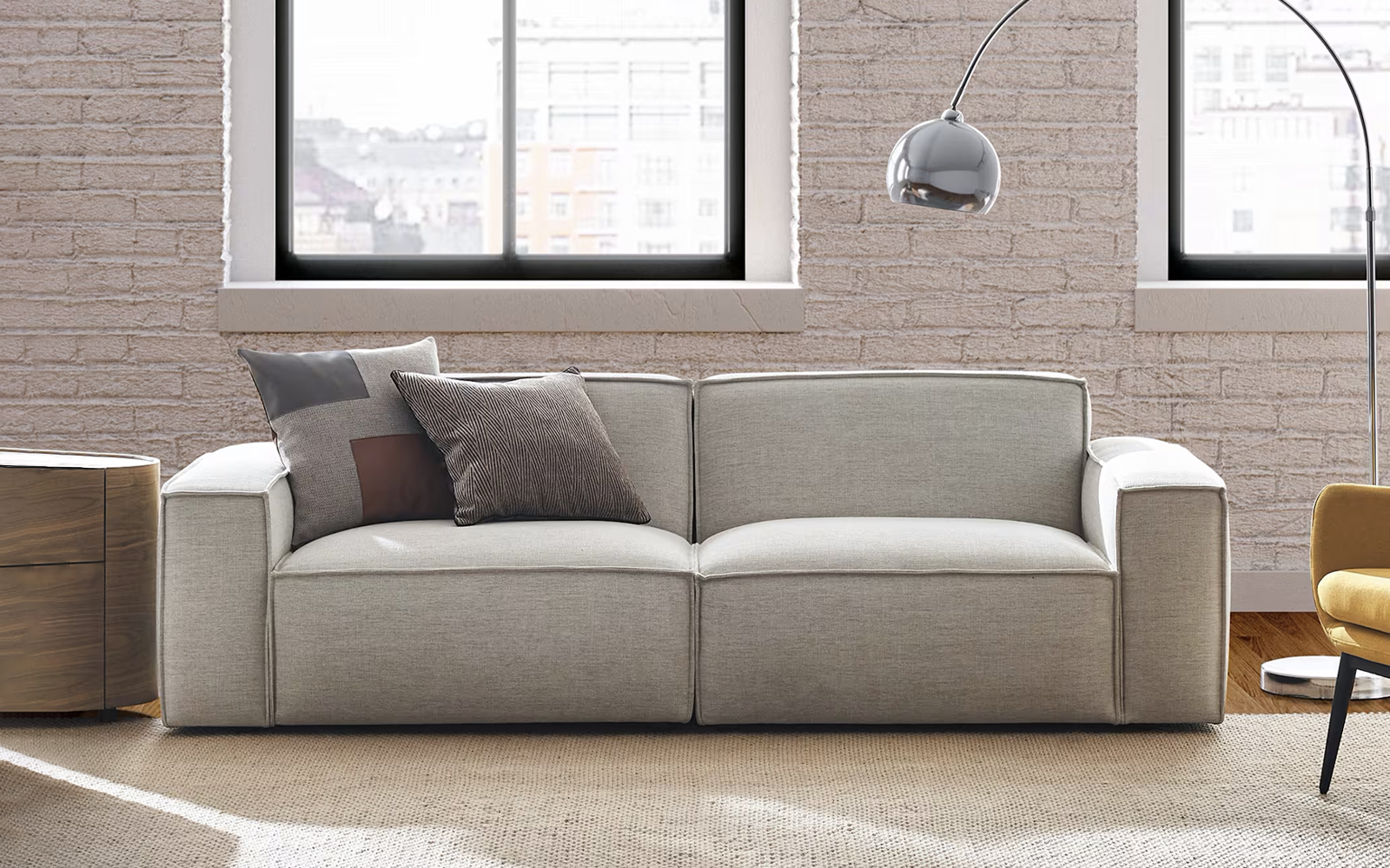 Nuestro sofá Modular 2 puestos se caracteriza por su increíble comodidad gracias a su fabricación en plumas de diseño moderno, es un sofá cuadrado de perfectas líneas verticales y lindos detalles en sus bordes embonados, perfecto para espacios donde el confort es el protagonista.